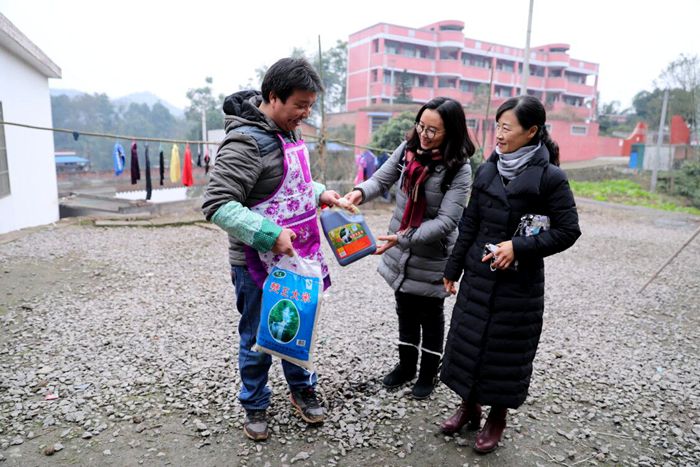 为李朝勇家送去粮油物资。